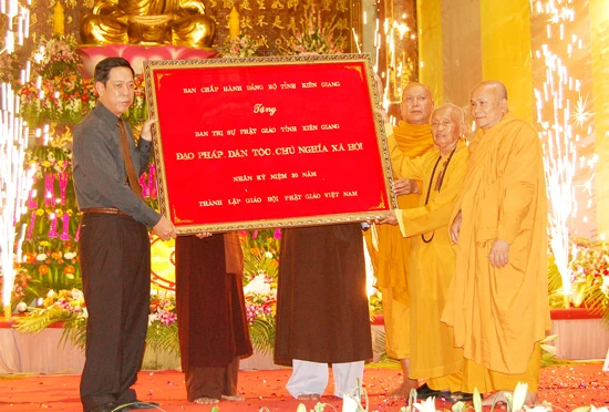Theo đó, Phật giáo Kiên Giang với 3 hệ phái chính là Bắc tông, Nam tông và Khất sĩ. Ban Trị sự Tỉnh hội Phật giáo sớm được thành lập (năm 1982). Trong gần 30 năm hình thành và phát triển, với tinh thần đoàn kết, hòa hợp Phật giáo Kiên Giang đã đạt được nhiều thành tựu Phật sự quan trọng. Từ năm 1981 đến nay, số lượng Tăng Ni, tín đồ Phật tử đều tăng nhanh, thành lập mới nhiều ngôi chùa, tịnh xá. Điển hình là công tác từ thiện xã hội với tổng trị giá hơn 326 tỷ đồng.