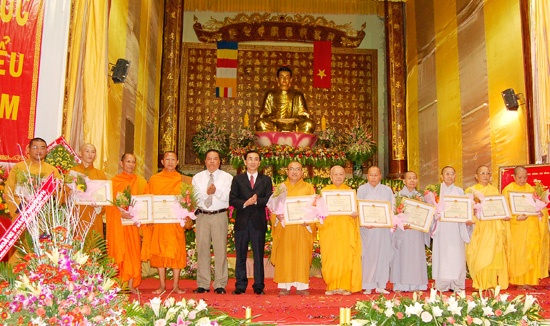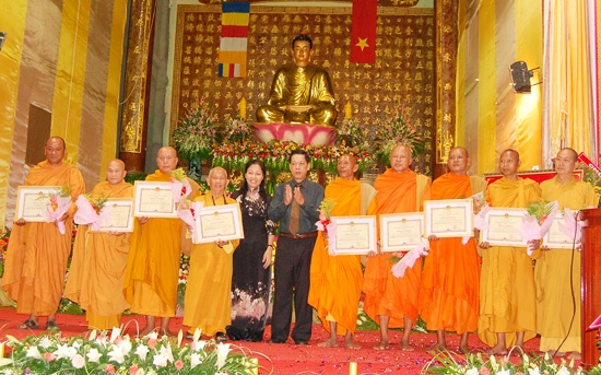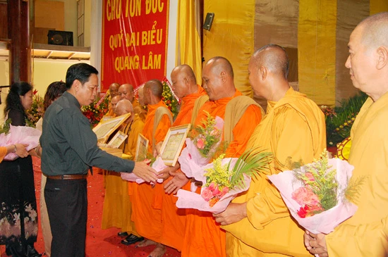 Lãnh đạo tỉnh tặng bằng khen cho chư Tôn đức Tăng Ni