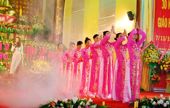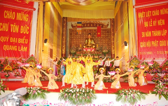 Mở đầu là chương trình văn nghệ tái hiện hình ảnh 30 năm đồng hành cùng dân tộc của GHPGVN.