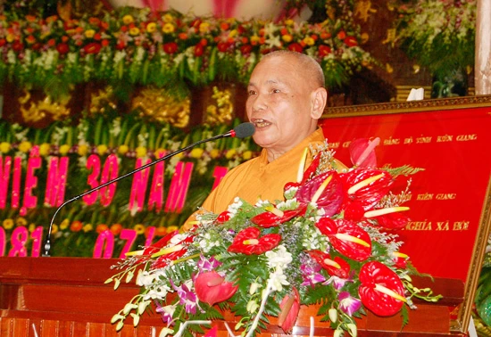Trong buổi lễ, ông Đặng Công Huẩn - UV BTV Tỉnh ủy, Phó Chủ tịch UBND tỉnh đã có bài phát biểu và gửi lời chúc mừng đến toàn thể Tăng Ni, Phật tử trong tỉnh nhân kỷ niệm 30 năm thành lập GHPGVN. Ông mong rằng, Phật giáo Kiên Giang tiếp tục phát huy tinh thần đoàn kết, hòa hợp, phụng sự đạo pháp, dân tộc.