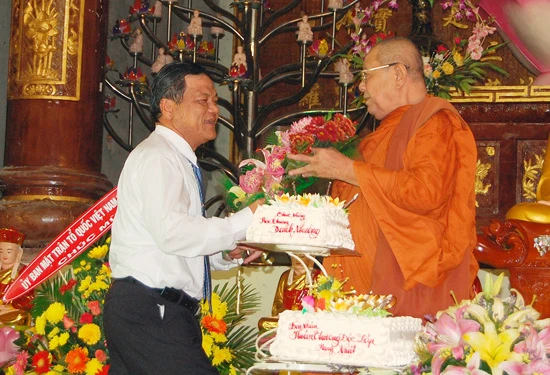 Đại diện chính quyền có ông Phan Thanh Bình - Thường vụ Tỉnh ủy, Trưởng ban Dân vận, Chủ tịch UBMTTQ tỉnh cùng đại diện Sở Nội vụ - Ban Tôn giáo, các cơ quan, ban ngành cấp tỉnh và TP.Rạch Giá.