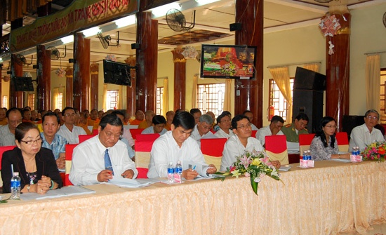 Chứng minh và tham dự có HT.Danh Nhưỡng - Phó Pháp chủ HĐCM, Trưởng ban Trị sự Tỉnh hội, HT.Thích Huyền Thông - UV HĐTS, Phó ban Trị sự Tỉnh hội, chư tôn đức Thường trực và thành viên Ban Trị sự, Ban Đại diện Phật giáo 14 huyện, thị, thành phố thuộc tỉnh.