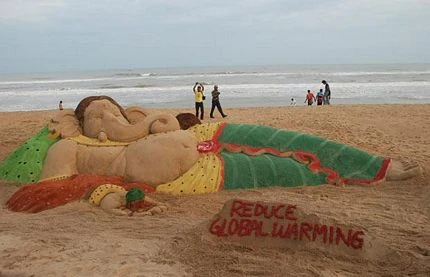 Những bức tượng cát nhằm thu hút sự chú ý của mọi người đối với tình trạng khí hậu nóng lên toàn cầu.
