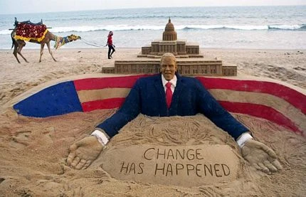 Tác phẩm điêu khắc trên cát chúc mừng Tổng thống Mỹ đoạt giải Nobel Hòa Bình 2009.