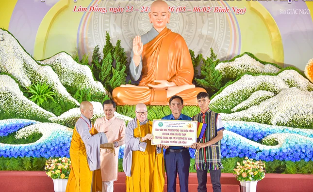 Dịp này, chư tôn đức Ni Phân ban Ni giới tỉnh Lâm Đồng đã trao 36 suất học bổng đến Tăng Ni sinh Trường cấp Phật học Lâm Đồng; 120 phần học bổng cho học sinh nghèo vượt khó và 1 căn nhà tình thương cho gia đình khó khăn trên địa bàn.