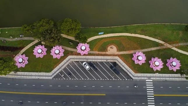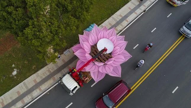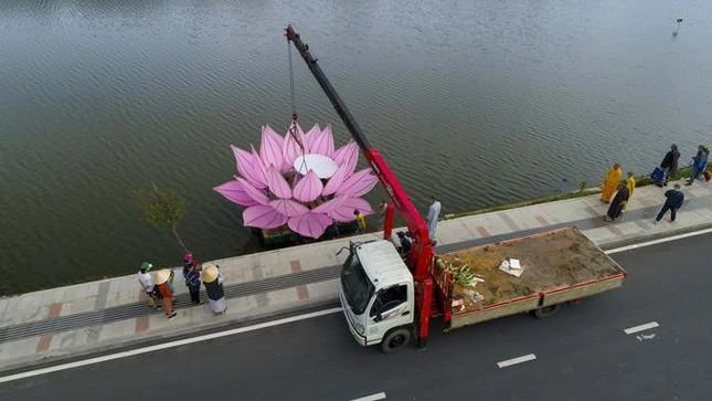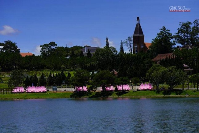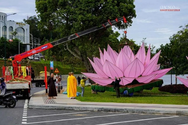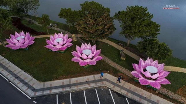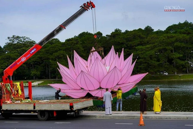 GNO - Ban Văn hóa, Ban Trị sự GHPGVN TP.Đà Lạt, sáng ngày 7-4-Nhâm Dần đã làm lễ hạ thủy, tôn trí 7 đóa hoa sen giữa lòng hồ Xuân Hương, cung kính cúng dường mừng Đại lễ Phật đản Phật lịch 2566 – Dương lịch 2022.