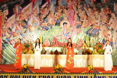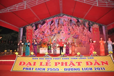 (GNO-Lạng Sơn): Trong niềm hân hoan mừng đón ngày Đức Phật đản sinh trên khắp mọi miền Tổ quốc, vào tối 10-5 tại chùa Thành - Trụ sở Ban Đại diện Phật giáo tỉnh Lạng Sơn đã long trọng tổ chức Đêm văn nghệ chào mừng Đại lễ Phật đản.