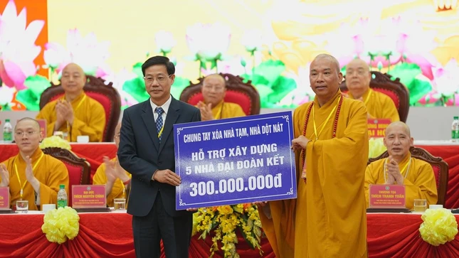 Tại đại hội, phát huy tinh thần từ bi của người con Phật, Ban Tổ chức đã trao tặng 300 triệu đồng xây dựng nhà Đại đoàn kết, chung tay xóa nhà tạm, nhà dột nát trên địa bàn tỉnh.
