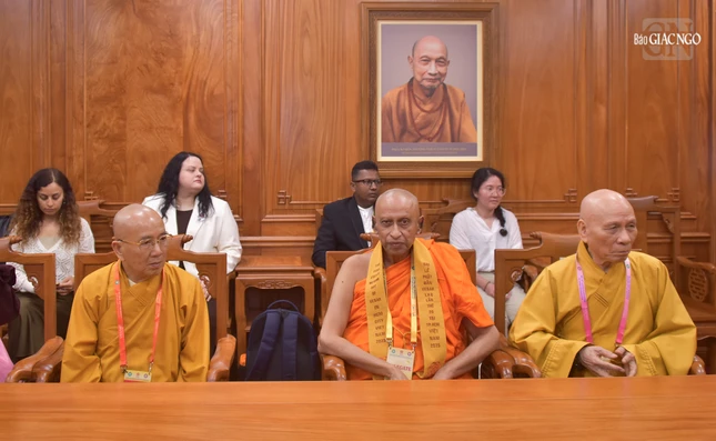 Hiện diện cùng tiếp đoàn, có Trưởng lão Hòa thượng Thích Giác Quang, Phó Pháp chủ GHPGVN; chư vị Phó Chủ tịch Hội đồng Trị sự: Hòa thượng Thích Khế Chơn, Thượng tọa Thích Thanh Phong; Thượng tọa Thích Giác Dũng, Thư ký Văn phòng Đức Pháp chủ.