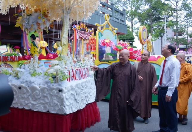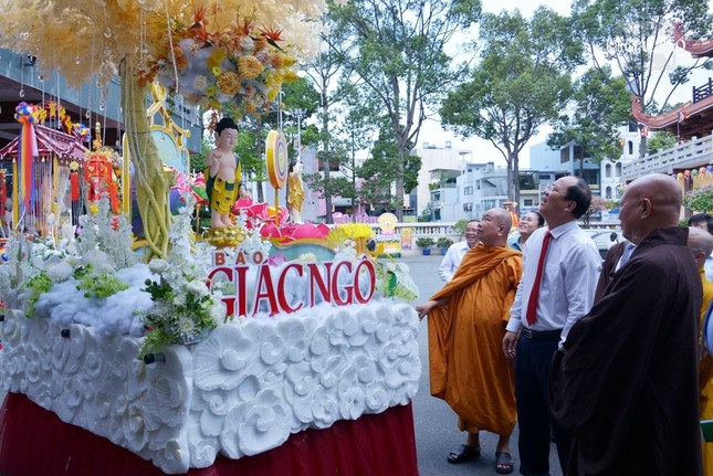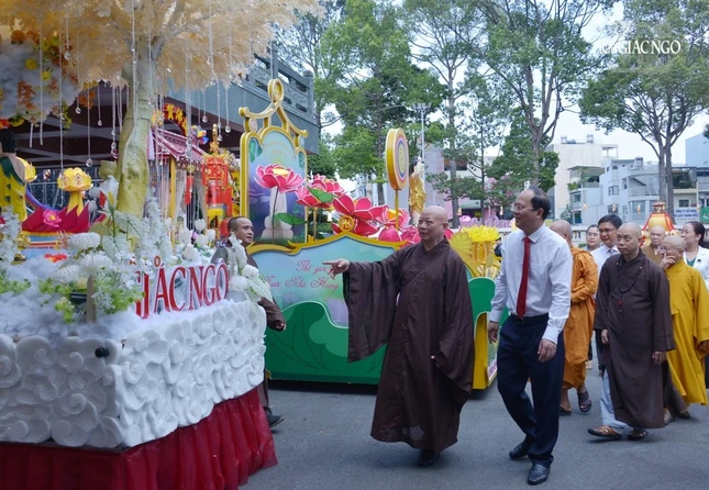 Tháp tùng đoàn còn có ông Nguyễn Văn Dũng, Phó Chủ tịch UBND TP.HCM; ông Nguyễn Mạnh Cường, Trưởng ban Dân vận Thành ủy TP.HCM; bà Nguyễn Thị Kim Thúy, Phó Chủ tịch Ủy ban MTTQVN TP.HCM; ông Trương Vĩnh Tùng, Phó Chánh Văn phòng Thành ủy; ông Nguyễn Văn Lượng, Phó Trưởng ban Tôn giáo TP.HCM và các vị trong đoàn.