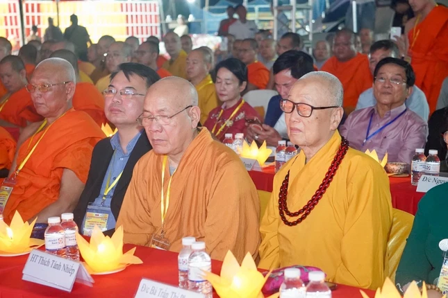 Chứng minh, tham dự buổi lễ có chư vị Phó Chủ tịch Hội đồng Trị sự: Hòa thượng Thích Quảng Tùng, Hòa thượng Thích Tánh Nhiếp, Hòa thượng Thích Thanh Điện; Hòa thượng Thích Thanh Huân, Ủy viên Thư ký Hội đồng Trị sự, Phó Văn phòng T.Ư GHPGVN; Hòa thượng Thích Thọ Lạc, Ủy viên Thường trực Hội đồng Trị sự, Trưởng ban Văn hóa T.Ư, Phó Trưởng ban Thường trực Ban Trị sự GHPGVN tỉnh Nghệ An, trụ trì chùa Hữu Nghị, Trưởng ban Tổ chức; Thượng tọa Thích Minh Quang, Trưởng ban Điều phối Phật giáo Việt Nam tại Lào; cùng chư tôn đức Tăng Ni.