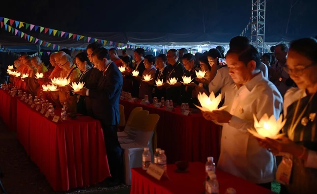 "Chương trình lễ thắp nến hôm nay, không chỉ là nghi thức tâm linh thiêng liêng, mà còn là biểu tượng của lòng tri ân sâu nặng, là sự tiếp nối truyền thống 'uống nước nhớ nguồn', 'ăn quả nhớ người trồng cây' của dân tộc Việt Nam, đồng thời cũng là sự thể hiện đạo lý cao đẹp trong văn hóa Lào, luôn tôn kính, biết ơn những người đã hy sinh vì đất nước. Mỗi ngọn nến được thắp sáng hôm nay, là một tấm lòng, một lời nguyện cầu cho anh linh các anh hùng liệt sĩ được siêu thoát, an nghỉ nơi cõi vĩnh hằng; đồng thời cũng là ánh sáng của niềm tin, của khát vọng hòa bình, của tình đoàn kết bền chặt giữa hai dân tộc Việt - Lào", Hòa thượng Thích Thọ Lạc nhấn mạnh.