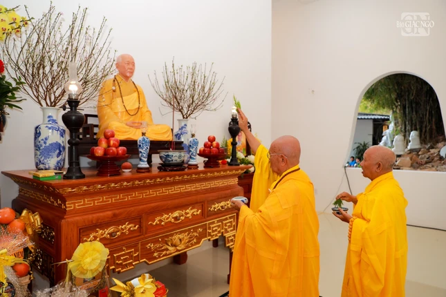 Chiều 20-1, Thượng tọa Thích Tâm Hải, Tổng Biên tập Báo Giác Ngộ cùng Đại đức Thích Quảng Hậu, Chủ nhiệm Câu lạc bộ Phóng viên - Cộng tác viên Báo Giác Ngộ đại diện tòa soạn cũng đã đến tu viện Vạn Liên thắp hương cầu nguyện |