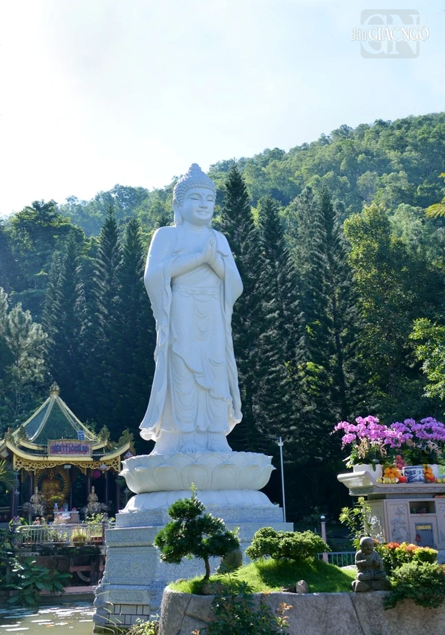 Tôn tượng Đức Phật A Di Đà cao 9 mét vừa được tôn tạo gần đỉnh núi Thị Vãi |
