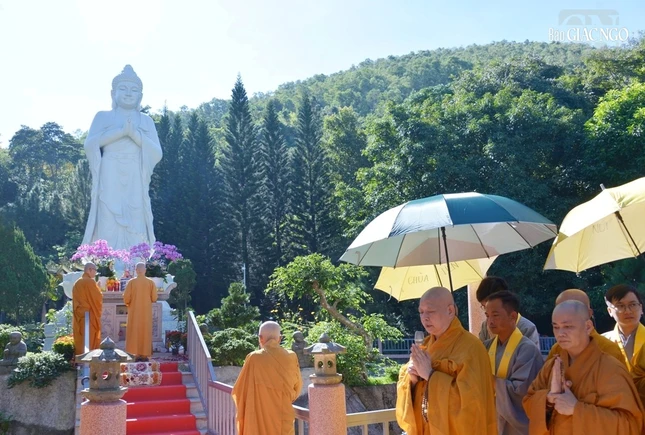 GNO - Sáng nay, 24-10 (10-9-Quý Mão), tại chùa Linh Sơn Bửu Thiền - núi Thị Vãi, tỉnh Bà Rịa-Vũng Tàu đã trang nghiêm cử hành lễ an vị tôn tượng Đức Phật A Di Đà lộ thiên được tôn tạo trên gần đỉnh núi.