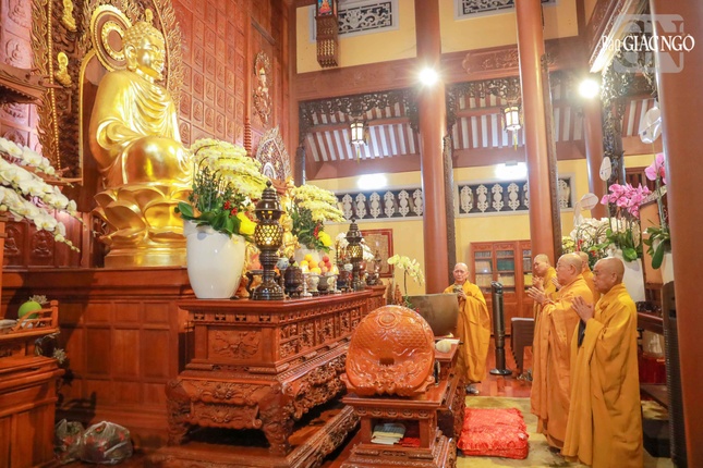 Tại buổi lễ, chư tôn đức đã niêm hương, đảnh lễ Tổ sư và Tam bảo; Thượng tọa Thích Thông Đức, trụ trì chùa Phú Hòa (P.Tân Hòa) xướng lễ cùng đại chúng đồng tụng chú Đại-bi và phát lồ sám hối.