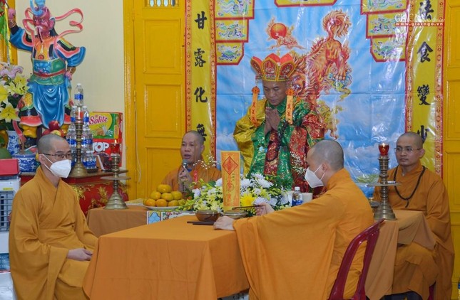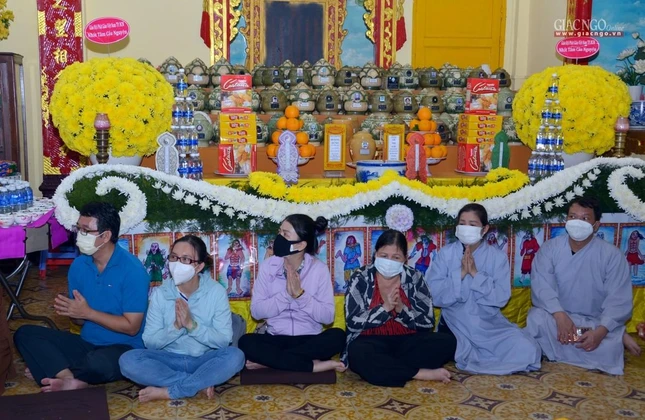 Trưa cùng ngày, chư Tăng đã làm lễ cúng ngọ, cầu siêu và cúng tiến chư hương linh, hồi hướng đến đồng bào tử nạn vì Covid-19. Trong buổi chiều là khóa lễ cầu siêu bạt độ. Đặc biệt, chư tôn đức đã thực hiện lễ trai đàn chẩn tế, mông sơn thí thực cho những vong linh không nơi nương tựa, cầu âm siêu dương thái, dịch bệnh tiêu trừ.