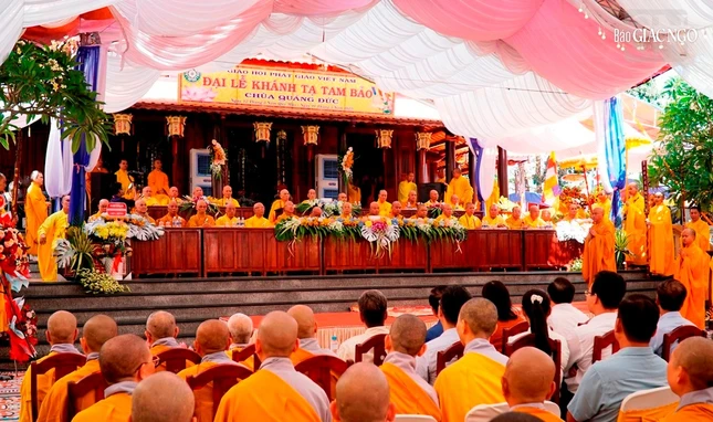 GNO - Ngày 1-5 (12-3-Quý Mão) Thượng tọa Thích Minh Thanh và chư Tăng, Phật tử chùa Quảng Đức (ấp 8, Xuân Tây, Cẩm Mỹ, tỉnh Đồng Nai) đã trang nghiêm tổ chức lễ hoàn nguyện, khánh tạ Tam bảo sau nhiều năm trùng tu.