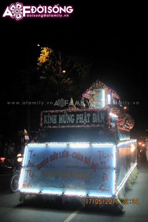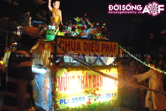 Như đã đưa tin, 19h tối ngày 17/ 05 một số chùa ở khu vực bờ sông Bình Lợi (đường Nơ Trang Long – quận Bình Thạnh) đã tổ chức đêm hội hoa đăng lớn nhất năm mừng đại lễ Phật Đản 2011, mà điển hình và dẫn đầu là chùa Diệu Pháp.