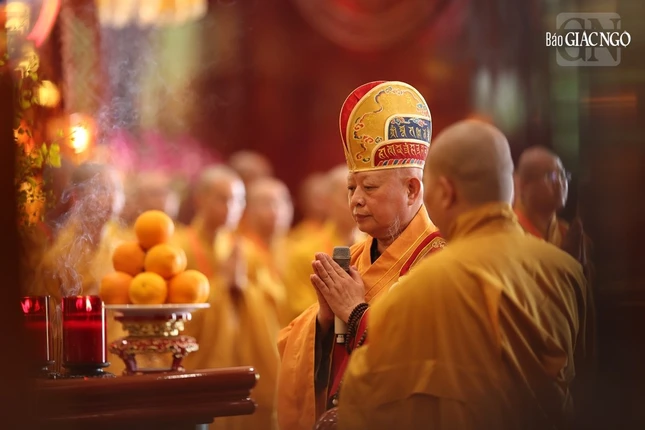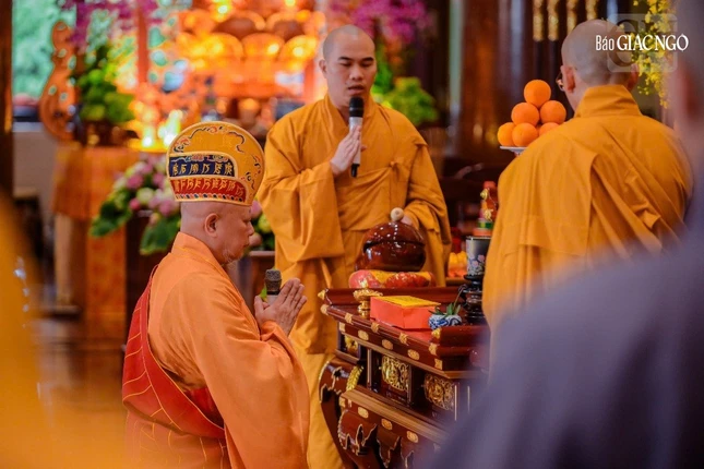 Trước đó, Ban Nghi lễ đã thỉnh chư anh linh tại Đài tưởng niệm Liệt sĩ năm Mậu Thân (xã Nhựt Tân, H.Bình Chánh) về an vị tại đàn tràng. Hòa thượng Thích Lệ Trang, Phó Chủ tịch Hội đồng Trị sự, Trưởng ban Nghi lễ T.Ư, Trưởng ban Trị sự GHPGVN TP.HCM sám chủ đàn tràng cùng chư tôn đức đã cử hành nghi thức niệm đàn sái tịnh, thượng đại tràng phan...
