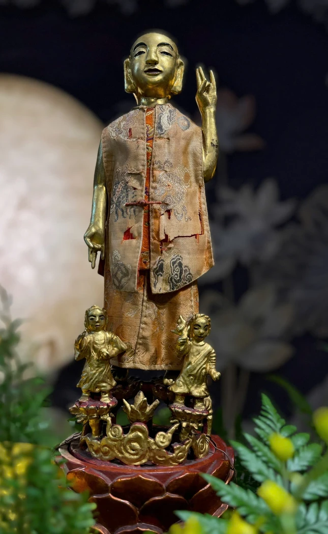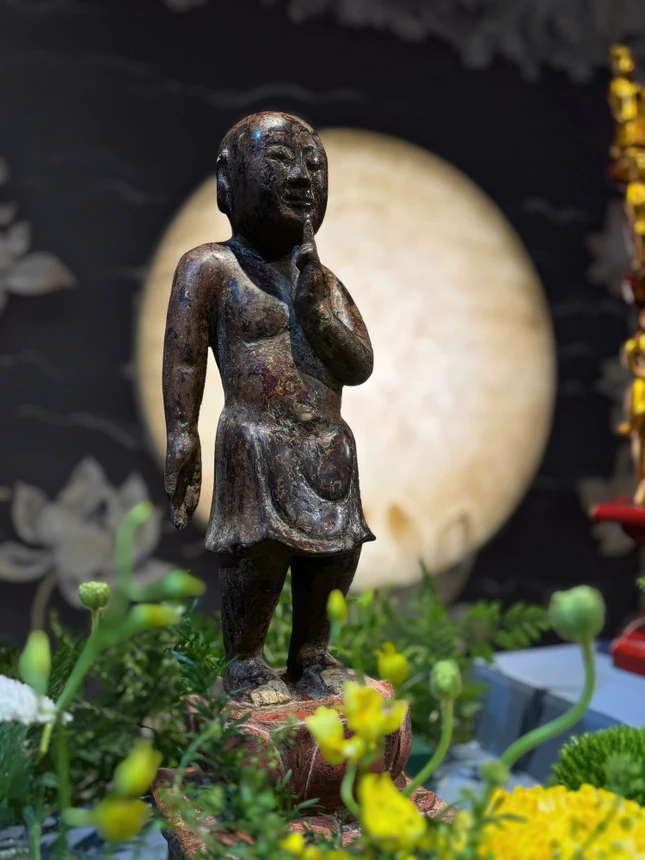 Hòa thượng Thích Khế Chơn Mộc dục tượng Đản sanh trong không gian triển lãm |
