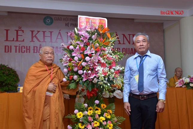 Để tán dương công đức của chư tôn đức Hệ phái Khất sĩ trong việc xây dựng Di tích đắc đạo Tổ sư Minh Đăng Quang, Thượng tọa Thích Phước Nguyên, Phó Chánh Văn phòng II Trung ương GHPGVN tuyên đọc quyết định trao Bằng tuyên dương công đức của Hội đồng Trị sự đến Ban Quản lý khu di tích. Hòa thượng Chủ tịch Hội đồng Trị sự trao đến Hòa thượng Thích Giác Toàn.