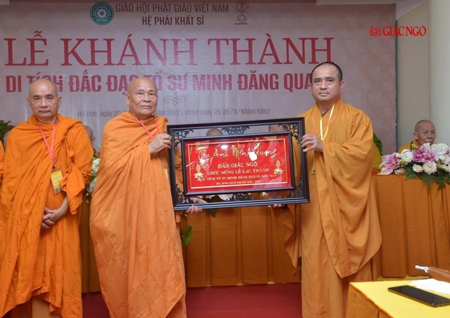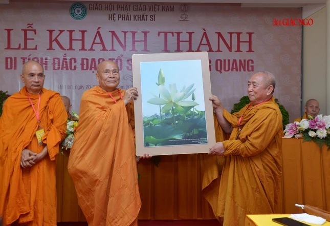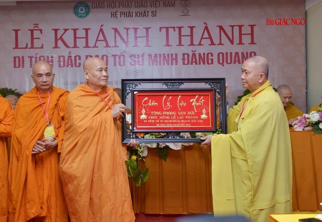 Ban Nghi lễ Trung ương GHPGVN tặng khánh chúc mừng Ban Quản lý Di tích đắc đạo Tổ sư Minh Đăng Quang vừa được quyết định thành lập