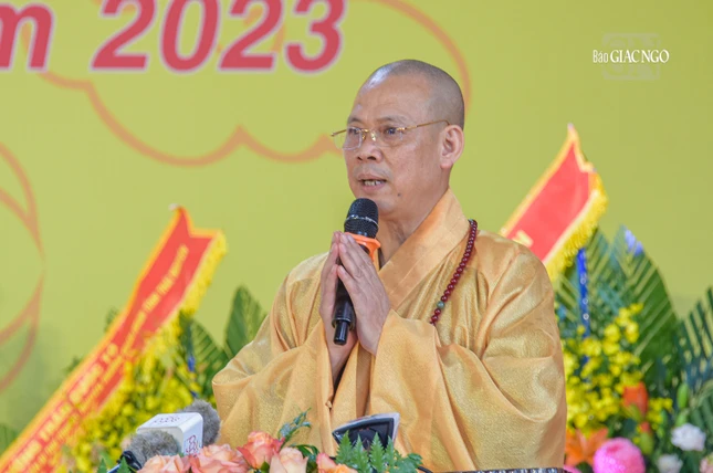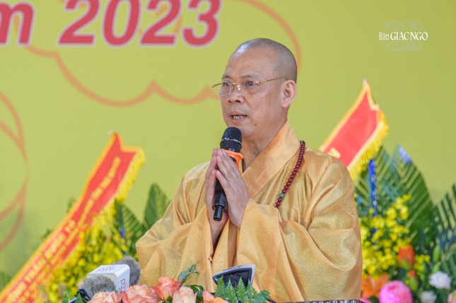 Thượng tọa Thích Nguyên Thành, Ủy viên Thường trực Hội đồng Trị sự, Trưởng ban Trị sự GHPGVN tỉnh Thái Nguyên thay mặt Ban Tổ chức phát biểu cảm tạ chư tôn đức giáo phẩm lãnh đạo GHPGVN, Nhà nước, Chính phủ, các cơ quan T.Ư và tỉnh Thái Nguyên, cùng Tăng Ni, Phật tử, các doanh nghiệp, mạnh thường quân đã đến tham dự và hết lòng ủng hộ buổi lễ hôm nay.