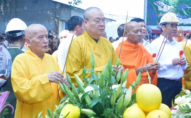 | Chư tôn đức, đại diện chính quyền thực hiện nghi thức động thổ |