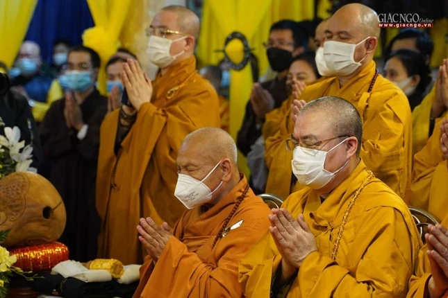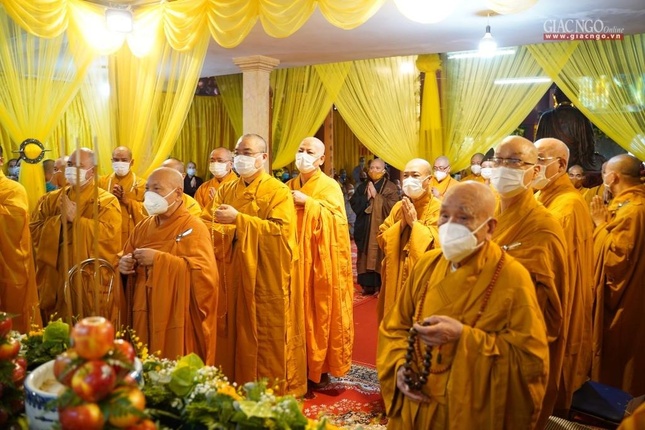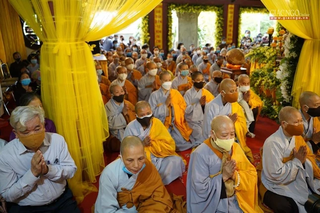 Hiện diện cử hành nghi lễ có Trưởng lão Hòa thượng Thích Thanh Đàm, Phó Pháp chủ Hội đồng Chứng minh; Hòa thượng Thích Thiện Nhơn, Chủ tịch Hội đồng Trị sự, Trưởng ban Tổ chức lễ tang; Hòa thượng Thích Thanh Nhiễu, Phó Chủ tịch Thường trực Hội đồng Trị sự; Hòa thượng Thích Bảo Nghiêm, Phó Chủ tịch Hội đồng Trị sự, Trưởng ban Trị sự GHPGVN TP.Hà Nội - đồng Phó Thường trực Ban Tổ chức lễ tang; cùng chư vị giáo phẩm Phó Chủ tịch, Ban Thường trực Hội đồng Trị sự và chư Tăng Ni, Phật tử.