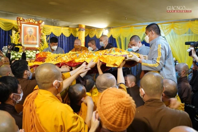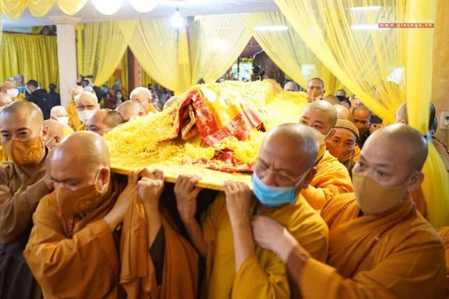 Chư tôn đức đã cử hành các nghi thức truyền thống, pháp tử cung thỉnh thân tứ đại của cố Đại lão Hòa thượng tân viên tịch rời thiền thất hướng đến Giác linh đường, nơi tôn trí kim quan, ảnh vị của ngài tại Tổ đình Viên Minh (chùa Ráng), tọa lạc tại xã Quang Lãng, huyện Phú Xuyên, Thành phố Hà Nội.