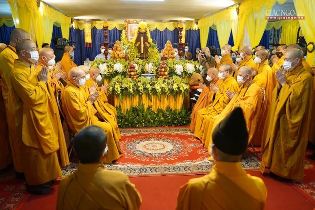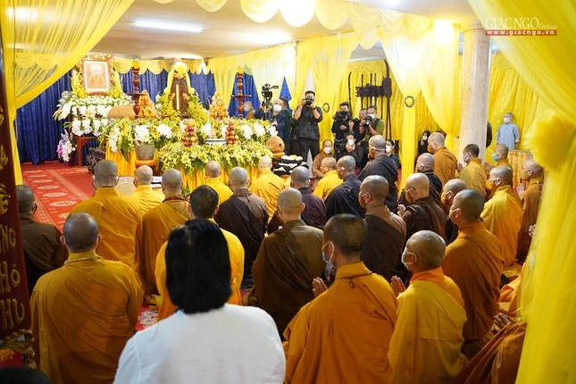Thông bạch đặc biệt của Trung ương Giáo hội cho biết: Thể theo di nguyện trên của Đức Pháp chủ và trước bối cảnh đại dịch Covid-19 vẫn còn diễn biến phức tạp ở nhiều địa phương, Ban Thường trực Hội đồng Chứng minh, Ban Thường trực Hội đồng Trị sự Trung ương GHPGVN quyết định tổ chức Lễ truy điệu tưởng niệm và Lễ nhập bảo tháp Đức Pháp chủ theo hình thức trực tiếp (đối với Tăng Ni trên địa bàn TP.Hà Nội) và trực tuyến tới trụ sở GHPGVN các cấp, tới các chùa, cơ sở tự viện cả nước trong cùng thời gian.