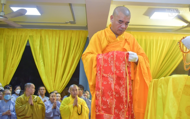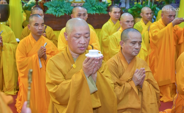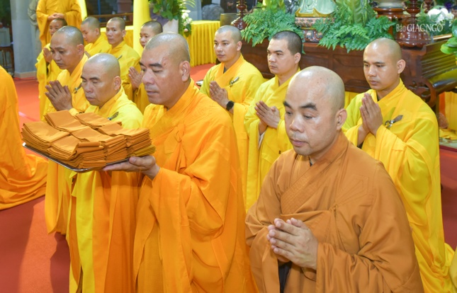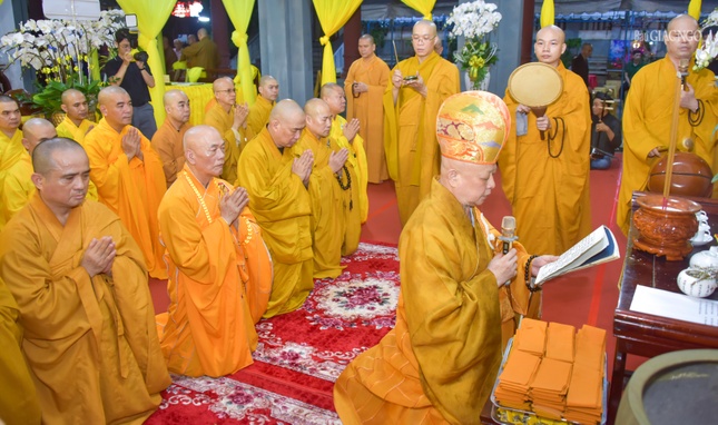 Tại buổi lễ, Hòa thượng Thích Lệ Trang, Trưởng ban Nghi lễ T.Ư, sám chủ thực hiện khóa lễ theo nghi thức thiền môn, cung thỉnh chư tôn đức giáo phẩm Hội đồng Chứng minh, Hội đồng Trị sự niêm hương trước Phật đài. Hòa thượng Sám chủ thực hiện các nghi thức sái tịnh, trị quan.