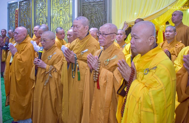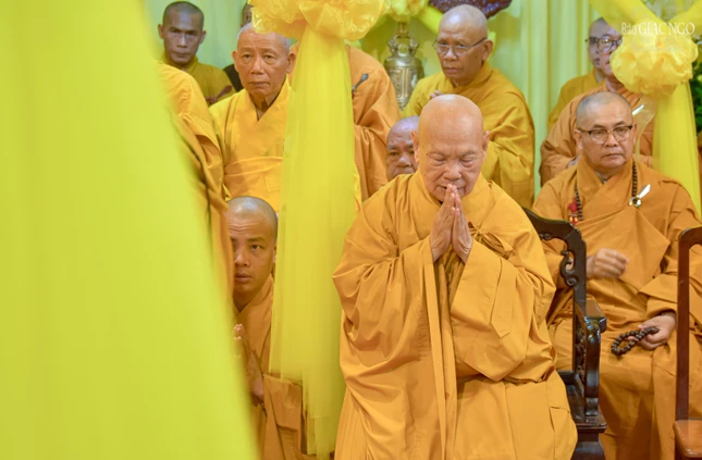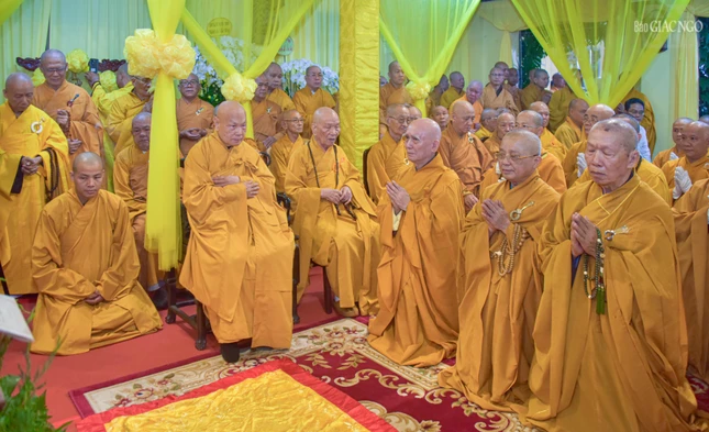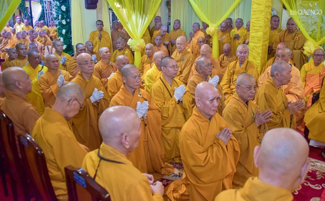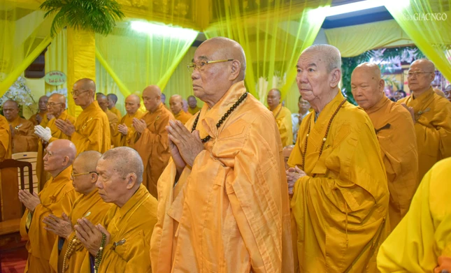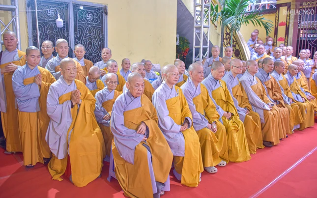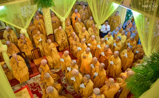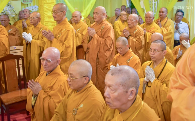 | Trưởng lão Hòa thượng Thích Thiện Nhơn cùng chư vị Trưởng lão Hội đồng Chứng minh GHPGVN tham dự hộ niệm |