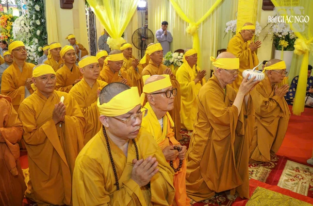 Sau lễ nhập kim quan, Hòa thượng Thích Tâm Thanh, trụ trì chùa Lôi Âm cùng chư Tăng Ban Kinh sư đã cử hành các nghi thức truyền thống: khai kinh bạch Phật, thỉnh Giác linh an vị, thọ tang.
