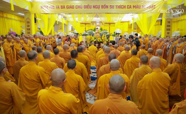 Hòa thượng Thích Huệ Thông, Phó Chủ tịch Hội đồng Trị sự, Trưởng ban Pháp chế Trung ương dẫn lễ thực hiện nghi thức nhập kim quan theo truyền thống thiền môn, trong âm thanh đồng niệm hồng danh Đức Phật Bổn Sư và chuông trống Bát-nhã trầm hùng.