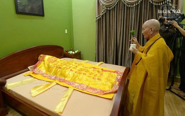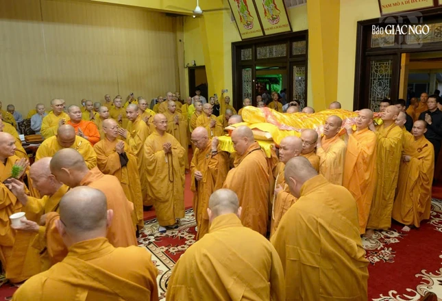 Lễ nhập kim quan và thọ tang Trưởng lão Hòa thượng Thích Trí Tịnh cử hành tại chùa Vĩnh Nghiêm (P.Xuân Hòa, TP.HCM) vào chiều ngày 8-10 - Ảnh: Bảo Toàn/BGN