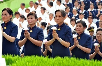 Hàng ngàn chư ni và các Phật tử của Hội từ thiện Từ Tế đã tập hợp trước Đài tưởng niệm Chiang Kai-shek ngày chủ nhật để kỷ niệm ngày Đức Phật đản sinh