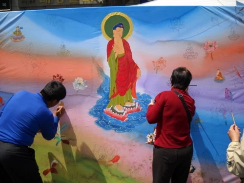Phật tử Hàn Quốc tắm Phật