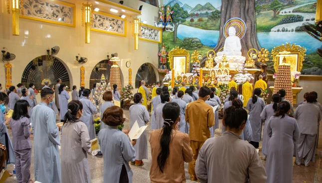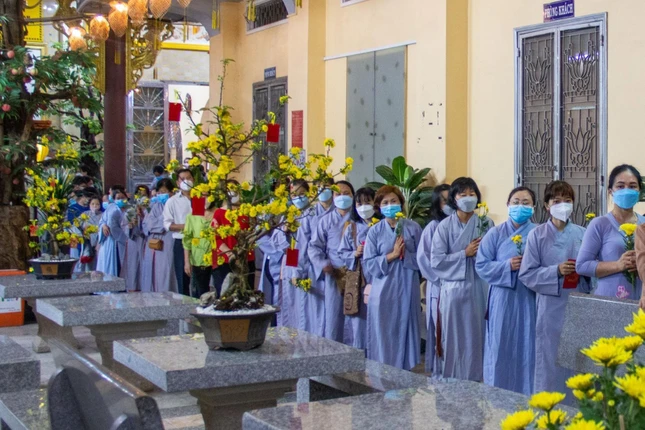GNO - Phút giao thừa thiêng liêng, chuông, trống Bát Nhã vang lên, người người đến chùa dâng hương lễ Phật, mong năm mới an lạc, kiết tường.