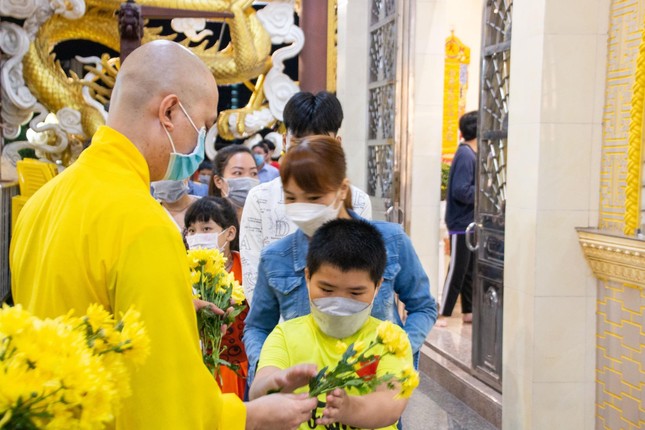 Nhận lộc xuân từ Hòa thượng trụ trì chùa Vạn Đức