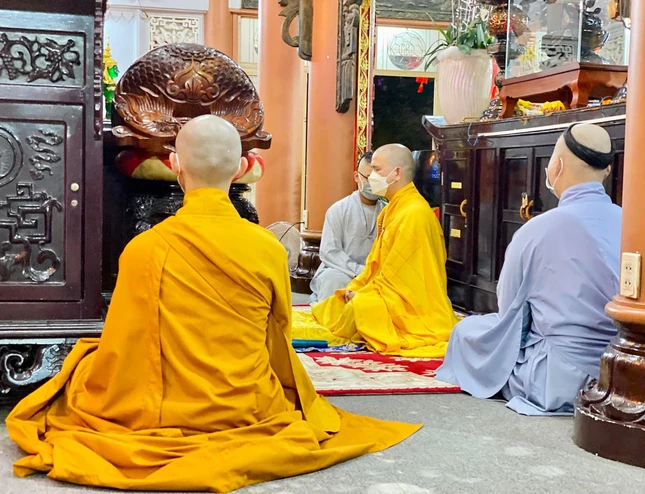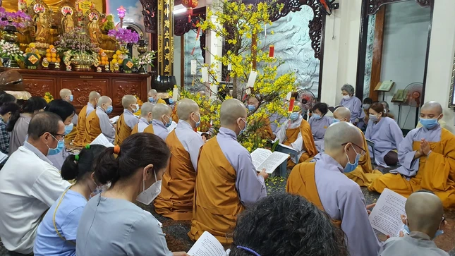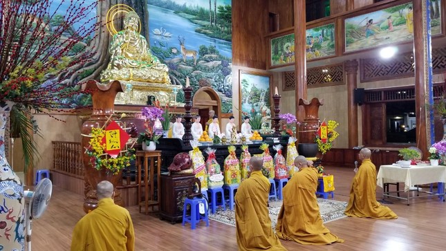 | Chư Tăng cử hành lễ giao thừa tại chánh điện |