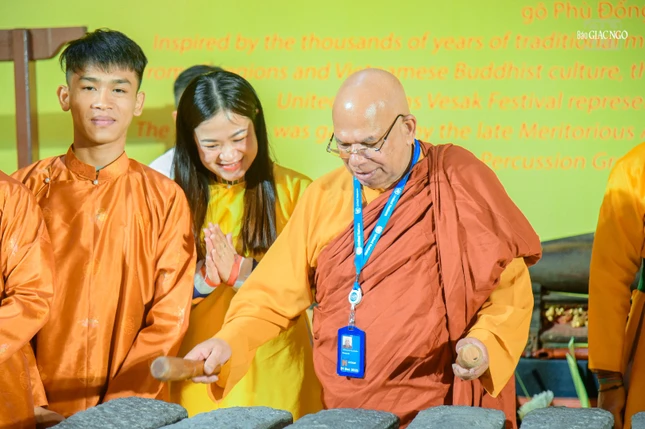 Hòa thượng Phó Trưởng ban Thường trực Ban Văn hóa T.Ư chia sẻ thêm điểm nhấn độc đáo và mang tính biểu tượng mạnh mẽ là nghi thức thượng Đạo kỳ với kích thước 500m2 và quả cầu biểu tượng Phật giáo quốc tế cao 10m.
