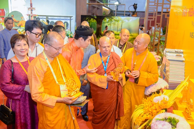 Sau khi cắt băng khai mạc, chư tôn Tăng Ni, đại biểu, quan khách đã tham quan các gian hàng triển lãm Văn hóa Phật giáo.