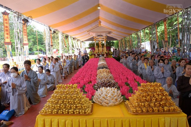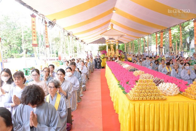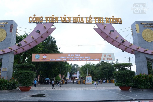 Trưởng lão Hòa thượng Thích Minh Thông, Phó Thư ký Ban Thường trực Hội đồng Chứng minh, Chứng minh Ban Trị sự GHPGVN TP.HCM chứng minh; Hòa thượng Thích Lệ Trang, Phó Chủ tịch Hội đồng Trị sự, Trưởng ban Nghi lễ T.Ư, Trưởng ban Trị sự GHPGVN TP.HCM làm gia trì sư, cùng chư tôn đức Ban Nghi lễ thực hiện nghi thức thượng phan, bạch Phật khai kinh, sái tịnh đàn tràng, thỉnh anh linh các anh hùng, liệt sĩ, chiến sĩ, đồng bào đã chôn cất tại nghĩa trang này an vị.