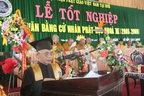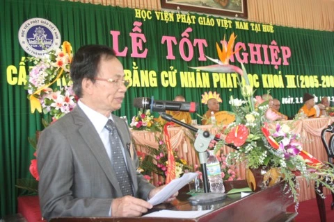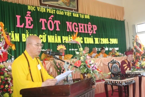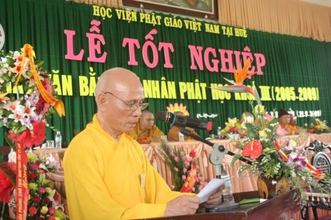 Sau phần khai từ của Hòa thượng Thích Đức Thanh - Phó Viện trưởng Thường trực Học viện PGVN tại Huế. Tiếp đến Hòa thượng Viện trưởng đã đọc lời diễn từ chào mừng, Cư sĩ Tâm Kiên Cao Huy Hóa đọc Báo cáo tổng kết khóa III. Sau phần phát văn bằng Cử nhân Phật học cho 169 Tăng Ni sinh viên là cảm từ của đại diện Tăng Ni sinh viên, phát biểu của đại diện Ban Bảo trợ Học viện, phát biểu của Ban trị sự Tỉnh Giáo hội Phật giáo TT-Huế, phát biểu của Lãnh đạo Chính quyền tỉnh TT-Huế và Đạo từ của Trung ương GHPGVN.