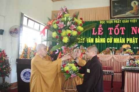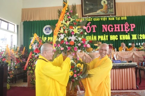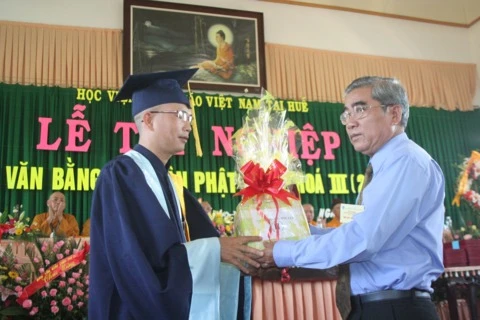 HT. Thích Giác Toàn – Phó Chủ tịch HĐTS - Phó Trưởng ban Giáo dục Tăng Ni, HT. Thích Đức Phương – Phó Chủ tịch HĐTS, Trưởng Ban Trị sự THPG TT-Huế; HT. Thích Chơn Thiện – Trưởng Ban Giáo dục Tăng Ni GHPGVN, Viện trưởng Học viện PGVN tại Huế, HT. Thích Thiện Pháp - Phó Tổng Thư ký kiêm Chánh Văn phòng II; TT. Thích Bảo Nghiêm - Phó chủ tịch HĐTS Trưởng Ban Hoằng pháp GHPGVN, Trưởng Ban Trị sự TP. Hà Nội, TT Thích Thanh Quyết - UV thường trực HĐTS, Trưởng Ban Trị sự PG tỉnh Quảng Ninh, TT. Thích Huệ Trí - UV.HĐTS,Ô. Hồ Xuân Mãn, Bí thư Tỉnh ủy, Ô. Trần Phùng – Chủ tịch MTTQVN;Ô. Dương Viết Hồng – Phó Giám đốc Sở Nội vụ kiêm Trưởng ban Tôn giáo tỉnh, quý vị đại diện lãnh đạo cơ quan chức năng các ban ngành của tỉnh; chư Tôn đức Tăng Ni trong Hội đồng Điều hành Học viện, Ban Giảng huấn, Ban Bảo trợ Học viện, chư Tôn đức lãnh đạo các ban ngành trực thuộc Ban Trị sự, Bổn sư, Y chỉ sư của Tăng Ni sinh viên, cùng đông đảo nhân sĩ, trí thức, Phật tử và 169 Tăng Ni sinh viên mãn khóa Tốt nghiệp đã đến dự.