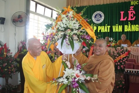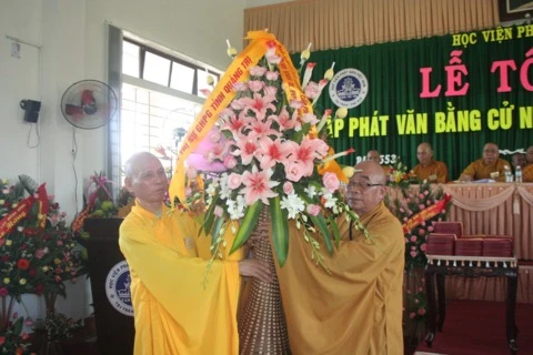 Tại buổi lễ, HT Viện trưởng Thích Chơn Thiện đã thay mặt Hội đồng Điều hành Học viện đón nhận bằng Tuyên đương công đức của Hội đồng Trị sự GHPGVN do Hòa thượng Thích Thiện Pháp - Phó Tổng thư ký kiêm Chánh Văn phòng II, đọc quyết định và HT. Thích Đức Phương - Phó Chủ tịch Hội đồng Trị sự GHPGVN đại diện trao tặng. Đồng thời, Hòa thượng Thích Chơn Thiện cũng đã thay mặt Hội đồng Điều hành Học viện tặng bằng tán dương công đức đến các cư sĩ Châu Trọng Ngô (Phó Viện trưởng), Nguyễn Tư Trừng (Giảng viên) Tôn Thất Hanh (Giảng viên), Lê Văn Lợi (Thư viện trưởng), Trần Duy Khanh (Quản thủ Thư viện) Nguyễn Phước Bảo Khâm (Giảng viên), đây là những vị giáo thọ thâm niên đã có nhiều đóng góp vào sự nghiệp giáo dục và đào tạo Tăng tài của Học viện.