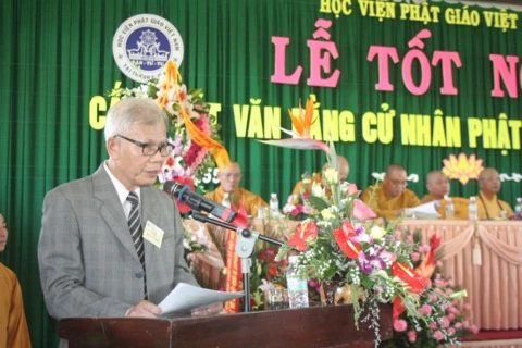 Cư sĩ Hoàng Tá Thích - đại diện Ban Bảo trợ Học viện phát biểu