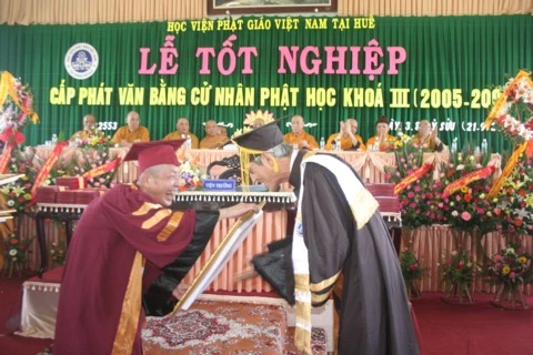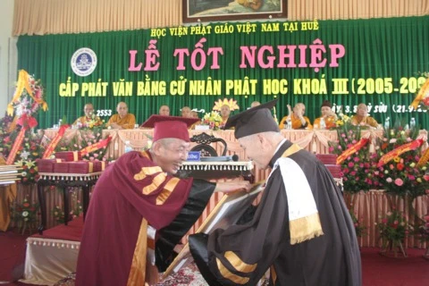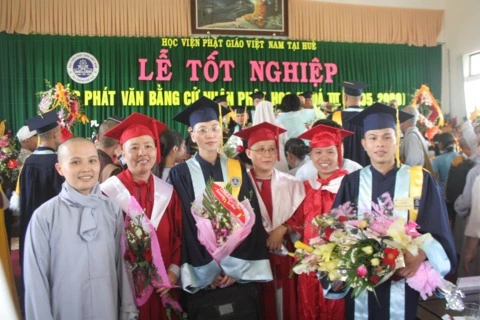 Học viện PGVN tại Huế đã đào tạo được 3 khóa. Khóa I (1997-2001) có 147 Tăng Ni sinh viên tốt nghiệp và khóa II (2001-2005) có 163 Tăng Ni sinh viên tốt nghiệp. Khóa III được tổ chức thi tuyển vào ngày 5-6/8/2005 với 374 Tăng Ni sinh trên toàn quốc dự thi. Kết quả có 242 Tăng Ni sinh trúng tuyển (115 Tăng và 127 Ni). Năm thứ 4 có 169 Tăng Ni sinh thi tốt nghiệp, trong đó 32 Tăng Ni sinh đạt hạt ưu của 3 năm học trước được làm luận văn tốt nghiệp và 137 Tăng Ni sinh thi tốt nghiệp. Trong 32 luận văn tốt nghiệp có 5 luận văn đạt điểm 10, 24 luận văn đạt điểm 9,5 và 3 luận văn đạt 8,5. Và trong số 137 Tăng Ni sinh dự thi tốt nghiệp có 11 đạt loại giỏi, 94 đạt loại khá và 32 đạt trung bình.